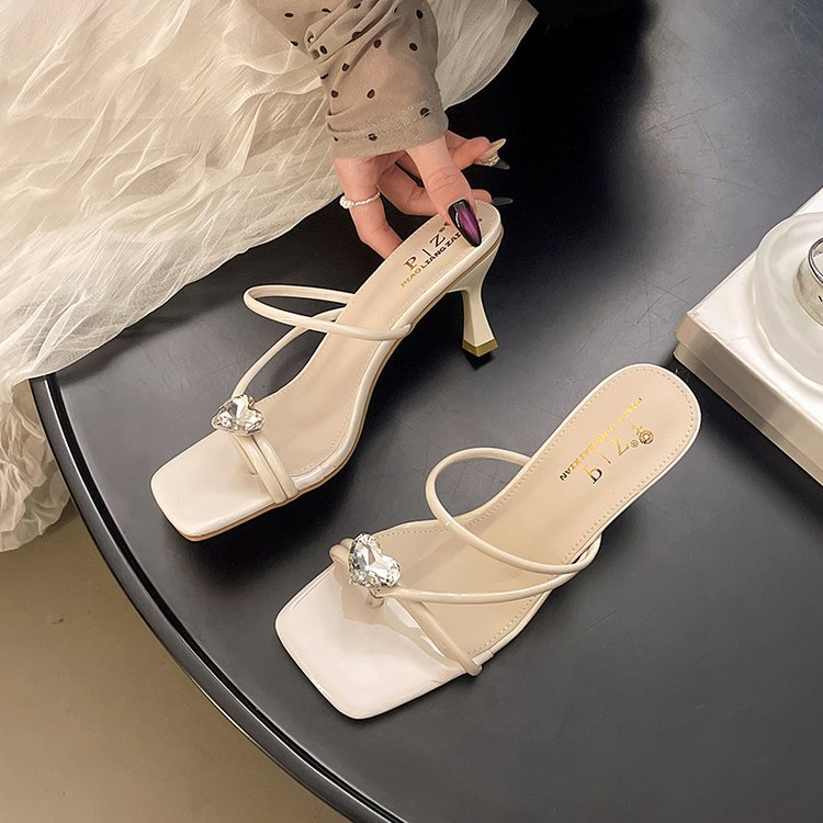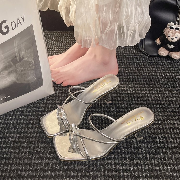High Heels Versatile, Niche French Fashion, Bow Tie, Thick Heel Slippers, Women’s Sandals