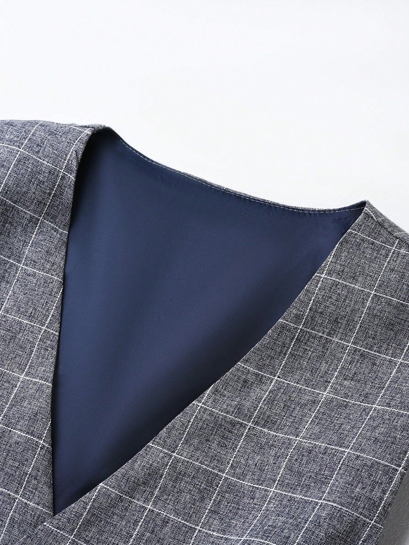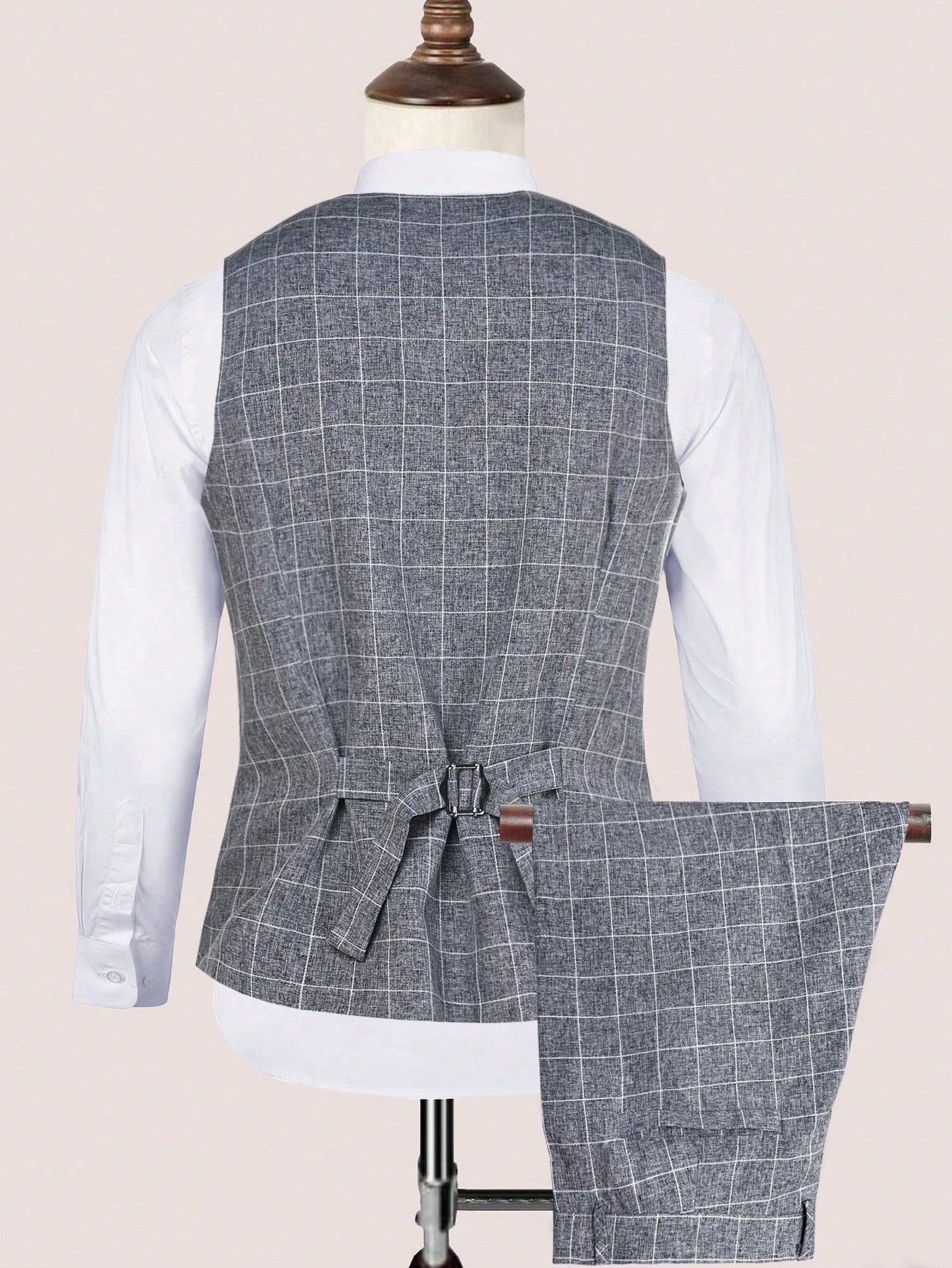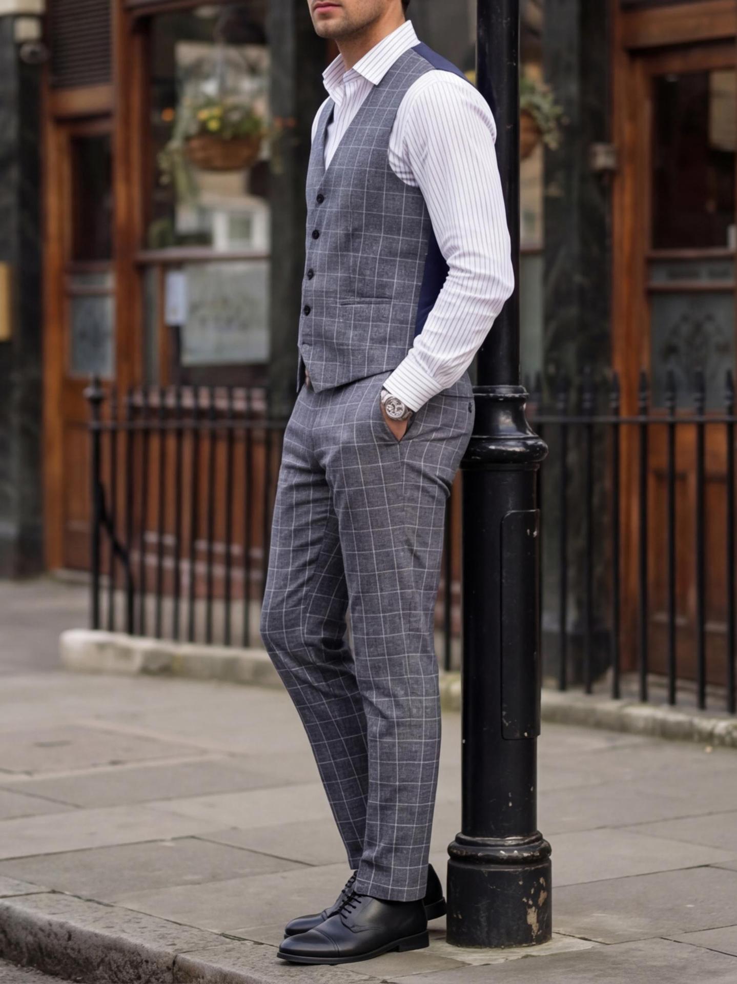 Mens Light Business Plaid Waistcoat And Dress Pants Two-Piece Suit